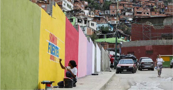 Por primera vez en 25 años se presenta un escenario en el que la oposición podría ganar con claridad al candidato chavista, en este caso Maduro. Una joven pinta propaganda chavista en un muro, el 24 de junio en Caracas.