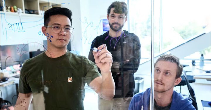 La herramienta ofrece la posibilidad de modificar regiones mayores del genoma con menor riesgo de efectos secundarios, pero por el momento solo se ha probado en bacterias. Los investigadores Patrick Hsu, Nick Perry y Matt Durrant, del Arc Institute, en Palo Alto (EE UU).