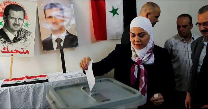 Son los cuartos comicios para elegir a los representantes en el Parlamento desde que comenzó la guerra civil en 2011. Se espera una amplia mayoría de la coalición controlada por el presidente Bashar al Asad. La mujer deposita su voto en una urna junto a la bandera del país y a los retratos de Bashar al Asad y de su padre y predecesor, Hafez al Asad.