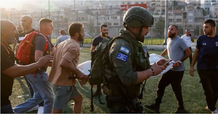 Personas trasladando muertos y heridos en Israel tras ataque proveniente desde el Líbano.