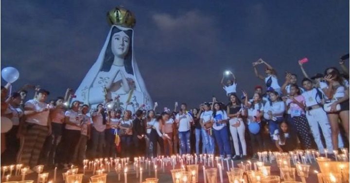 La marcha, formada por muchos jóvenes, recorrió desde la plaza Miranda, por la avenida Rómulo Gallegos hasta el monumento a la Virgen del Valle, donde cerca de las 7:00 de la noche se encendieron velas y se realizó una oración por la paz.