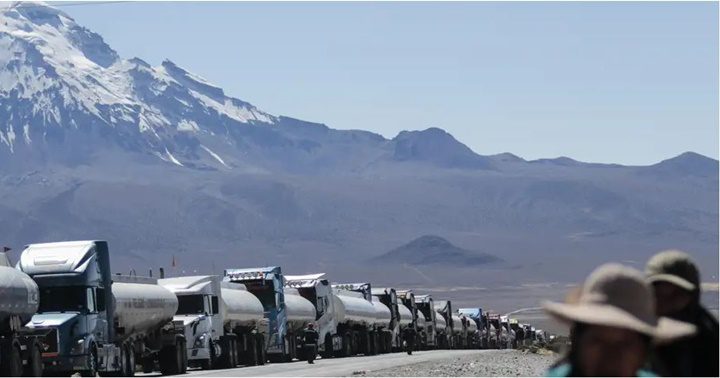 Decenas de camiones cisternas bloquearon en Tambo Quemado, los accesos a la frontera con Chile, durante el paro de transporte en protesta por la escasez de diésel y de dólares en Bolivia.Decenas de camiones cisternas bloquearon en Tambo Quemado, los accesos a la frontera con Chile, durante el paro de transporte en protesta por la escasez de diésel y de dólares en Bolivia.