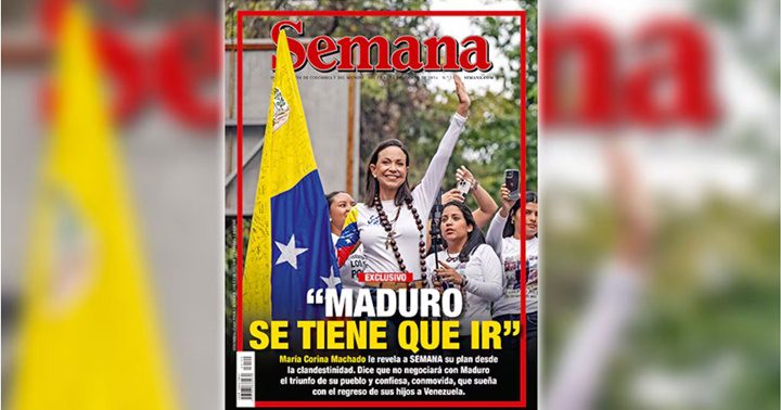 La dirigente opositora María Corina Machado le reveló a la Revista Semana su plan desde la clandestinidad. Dice que no negociará con Maduro el triunfo de su pueblo y confiesa, conmovida, que sueña con el regreso de sus hijos a Venezuela. Este sábado habrá marcha mundial.