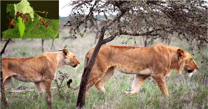 Una especie invasora de estos insectos provocó una reacción en cadena en la sabana que dejó a los felinos sin poder cazar cebras. Los leones de la reserva de Ol Pejeta usan las acacias para emboscar a las cebras, pero se están quedando sin ellas debido a la llegada de las hormigas invasoras.