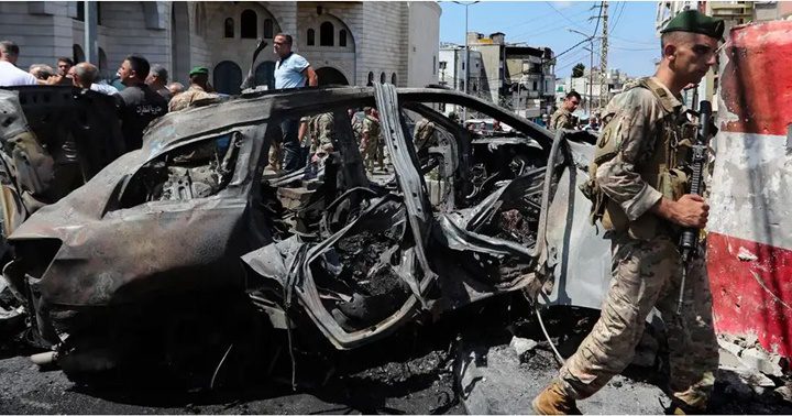 Un dirigente palestino de Fatah murió en un ataque aéreo israelí cerca de la ciudad de Sidón, en el sur del Líbano. Así quedó el auto en el que viajaba el dirigente fallecido en un ataque aéreo israelí.