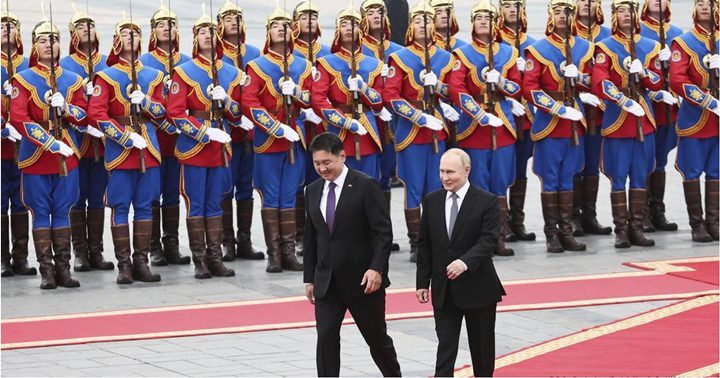 El presidente ruso, Vladimir Putin, se reunió con su homólogo mongol, Ukhnaagiin Khürelsükh, en una fastuosa ceremonia de bienvenida en la plaza central de Ulán Bator, según imágenes de medios oficiales rusos.
