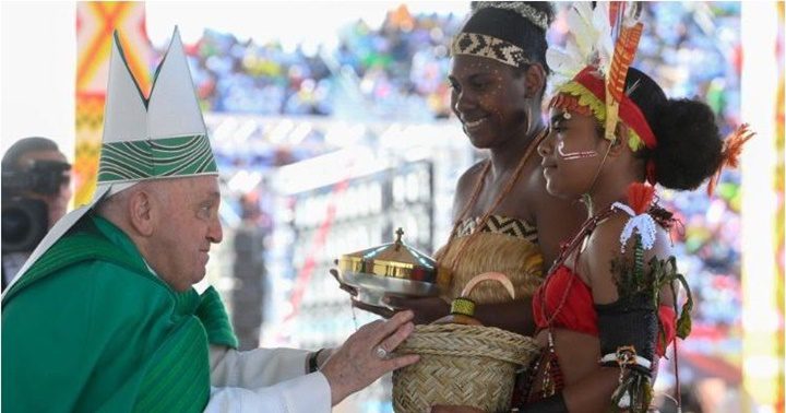 Antes de concluir la Santa Misa en el Estadio Sir John Guise de Puerto Moresby, en Papúa Nueva Guinea, el Santo Padre elevó una vez más su voz en favor de la paz para las naciones y para la creación. No al armamentismo ni a la explotación de la casa común, dijo el Pontífice, y también pidió oraciones por el Santuario de Lourdes afectado por una inundación.