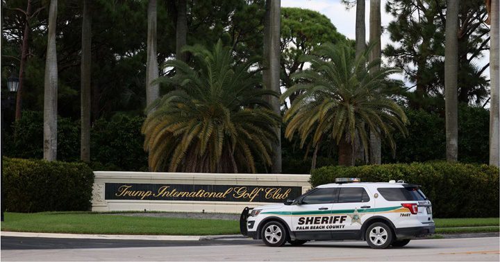 La policía ha detenido a un sospechoso, identificado por los medios como Ryan Routh, de 58 años, y ha encontrado un rifle AK-47, con mira telescópica, entre los arbustos en torno al recinto. Un vehículo de Policía ante la entrada del club de golf de Donald Trump en West Palm Beach, en Florida.