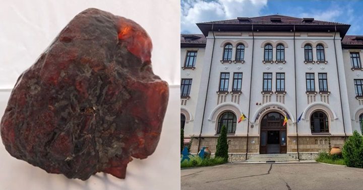 La piedra, de gran interés científico, podría tener entre 38.500.000 y 70.000.000 de años de antigüedad y es una de las más grandes del mundo. Imagen de la piedra de ámbar de 3,5 kilogramos encontrada en Rumania. Museo Provincial de Buzau.