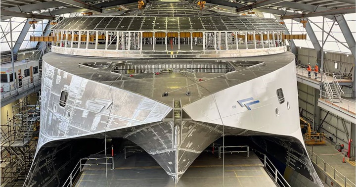 Estado actual del barco Incat Hull 096, un ferri eléctrico que enlazará Argentina con Uruguay.