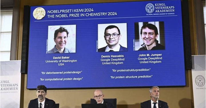 El Premio Nobel de Química 2024 fue otorgado conjuntamente a David Baker por el diseño computacional de proteínas y a Demis Hassabis y John M. Jumper por la predicción de la estructura de las proteínas.