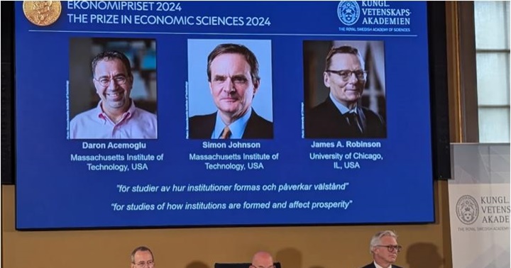 Daron Acemoglu, Simon Johnson y James A. Robinson ganaron el Premio Nobel de Economía, el último galardón del año que se entrega en reconocimiento a destacadas contibuciones a la humanidad, según la Fundación Nobel en Suecia.