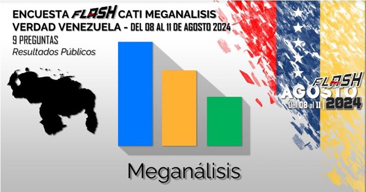 La encuestadora Meganalisis presento los resultados de una encuesta realizada durante el mes de agosto de 2024 y donde se analizan los resultados de la elección presidencial del 28 de julio, la situación económica y la valoración de los dirigentes políticos venezolanos.