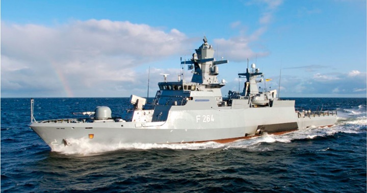 La corbeta Ludwigshafen am Rhein, desplegada frente a la costa libanesa, omo parte de la fuerza de paz de la ONU, FINUL, repelió un dron entrante en medio de crecientes tensiones en la región.