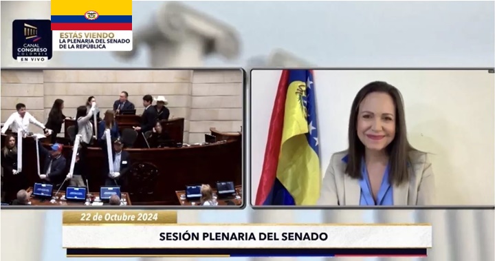 Es absurdo seguir pidiéndole a Nicolás Maduro que entregue unas actas que no va a entregar. María Corina Machado en el senado de Colombia.