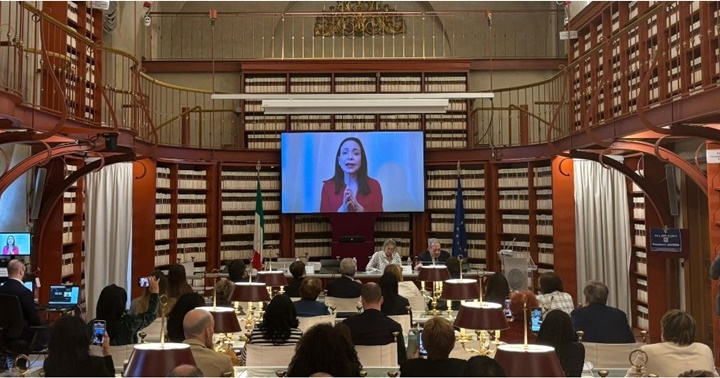 María Corina Machado, líder de la oposición venezolana, intervino en un foro en el Parlamento italiano sobre la situación en el país y pidió a la comunidad internacional a presionar a la administración de Nicolás Maduro.