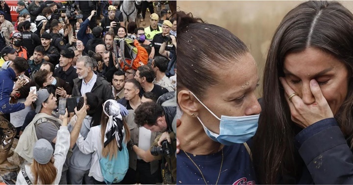 La reina Letizia, que ha recibido un impacto de barro en pleno rostro y que no ha podido contener las lágrimas, ha consolado a varias mujeres presentes en las calles de Paiporta, a quienes ha abrazado.