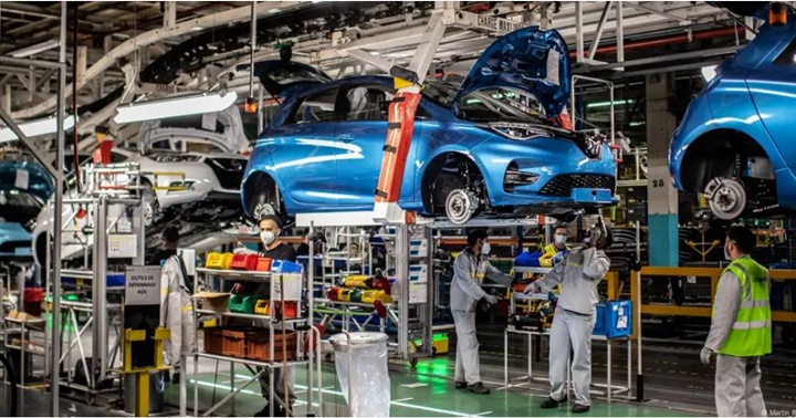Cadena de montaje del vehículo eléctrico Renault Zoe y el híbrido Nissan Micra, en Flins-sur-Seine, la mayor planta de producción de Renault en Francia.
