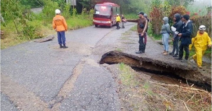 Richard lobo, Secretario General de Gobierno de Mérida, confirmó la información a través de los medios regionales. Precisó que por la crecida de uno de los ríos de la zona se produjo un colapso en la carretera 004, ubicada en el sector Portachuelos, en la parroquia principal del municipio Campo Elías.