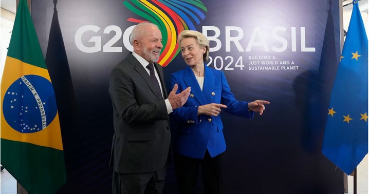 Lula da Silva y la presidenta de la Comisión Europea, Ursula von der Leyen, quien afirmó que el acuerdo entre la Unión Europea y el Mercosur, cuyo proceso de negociación podría cerrarse este viernes, significará muchas más oportunidades de empleo y crecimiento en Europa.