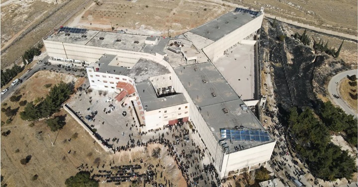 Una imagen aérea tomada con un dron muestra la prisión de Sednaya.
