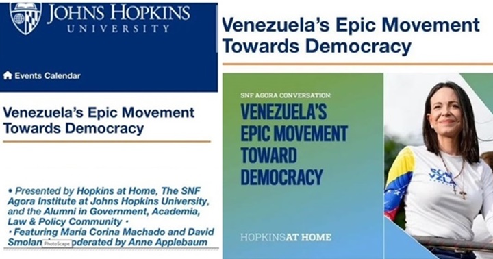 Durante una conferencia virtual en la Universidad Johns Hopkins, acompañada por la académica Anne Applebaum y el dirigente David Smolansky, Machado afirmó que el colapso del régimen sirio es un ejemplo de que incluso los gobiernos sostenidos por alianzas internacionales poderosas pueden caer.