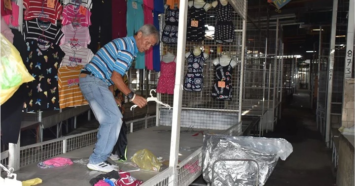 Estructuras están casi vacías con pocas personas vendiendo. Los pasillos de los mercados se ven desolados.