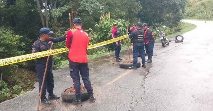 En el sector se habilitó un punto de control, que se encarga del resguardo de los vehículos que circulan por la carretera hacia el resto de Paria.