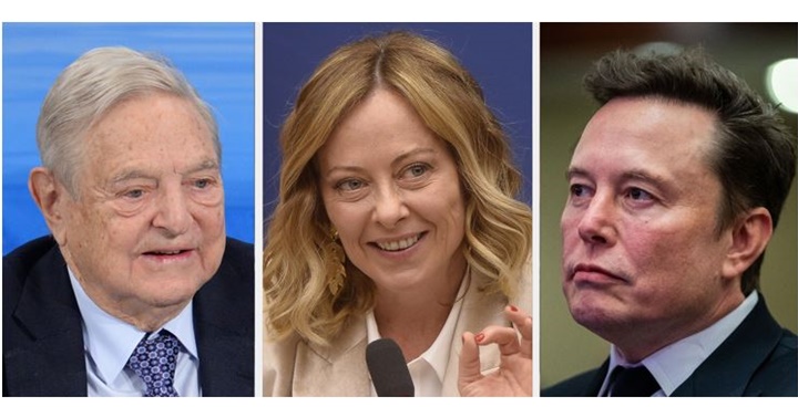 Recordó que Alemania intervino en las elecciones italianas y nadie protestó. George Soros, Giorgia Meloni y Elonk Musk.