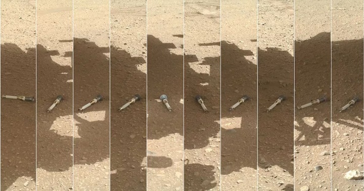 La misión para traer a la Tierra los materiales marcianos ya recopilados por el rover ‘Perseverance’ está en un callejón sin salida, ante su encarecimiento y retrasos, mientras que China ha anunciado que tendrá sus propias muestras en 2031. Fotomontaje realizado con imágenes de los tubos con muestras científicas extraídas de la superficie marciana por el rover ‘Perseverance’ desde su llegada al planeta rojo en febrero de 2021.