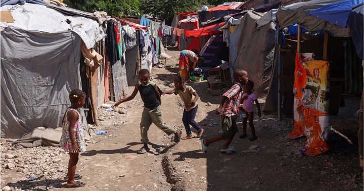Niños haitianos desplazados por la violencia juegan en un campamento en Puerto Príncipe .