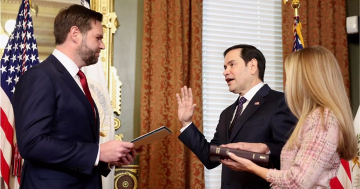 Aunque en el seno del gobierno Trump hay debate sobre qué hacer, el nuevo jefe de la diplomacia estadounidense y su equipo tienen una estrategia para enviar al chavista al exilio. ¿En qué consiste? Marco Rubio en su juramentación como Secretario de Estado.