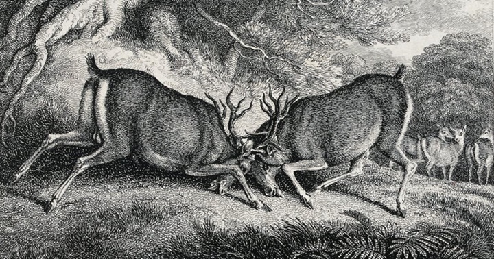 John Maynard Smith revolucionó el estudio de la evolución y del comportamiento animal aplicando la teoría de juegos a los sistemas dinámicos. Sus ideas se usan en múltiples problemas en economía, filosofía y ciencias sociales. Grabado de dos ciervos peleando realizado por el pintor inglés Samuel Howitt.