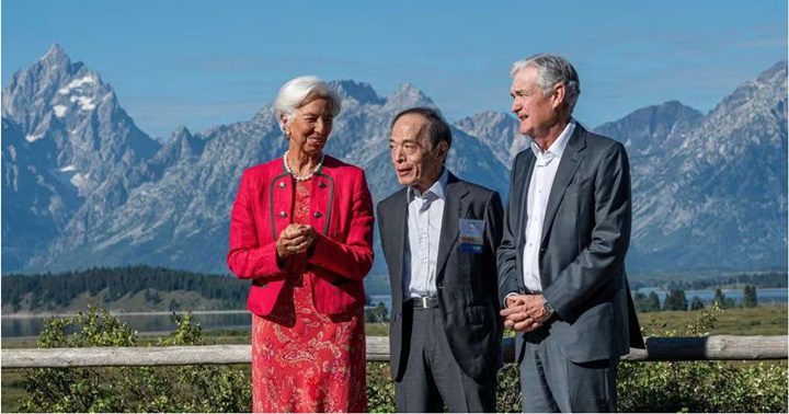 Tras la subida de tipos del Banco de Japón, la Reserva Federal hará una pausa, mientras que el BCE se dispone a rebajar el precio del dinero. Christine Lagarde, presidenta del Banco Central Europeo (BCE); Kazuo Ueda, gobernador del Banco de Japón, y Los bancos centrales toman caminos separados en el inicio de la presidencia de Trumpl, presidente de la Reserva Federal, en el seminario de Jackson Hole.