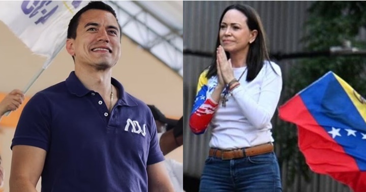 La líder opositora de Venezuela María Corina Machado le deseó fuerza y éxito al presidente de Ecuador, Daniel Noboa, quien figura como uno de los favoritos en las elecciones generales que se celebrarán este domingo en ese país.