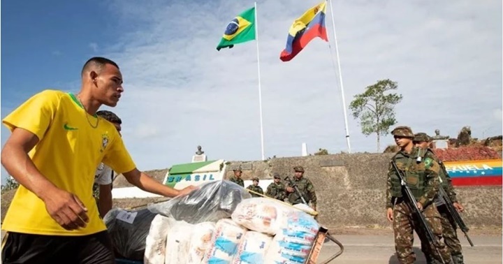 Los venezolanos encabezaron la lista de nacionalidades de migrantes que ingresaron a Brasil en 2024, según los datos divulgados por el Ministerio de Justicia y Seguridad Pública. Venezolanos pasan junto a soldados del ejército brasileño con suministros en la ciudad de Pacaraima, en la frontera entre Venezuela y Brasil .