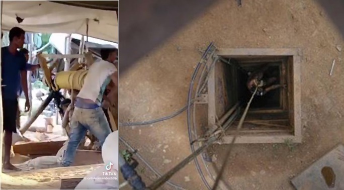 En cuestión de segundos, el chico desaparece de la vista mientras se interna en las profundidades del pozo para intentar ubicar, con la ayuda de una linterna atada a su cabeza, algún posible brote de oro en el yacimiento.