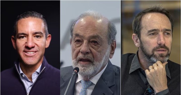 De izquierda a derecha: David Vélez (Nubank), Carlos Slim (América Móvil) y Marcos Galperin (Mercado Libre). Los tres más ricos de América Latina.