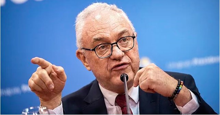 El nuevo canciller de Uruguay, Mario Lubetkin, habla en una rueda de prensa, en Montevideo. El periodista, cuya carrera abarca más de 40 años, asumió un nuevo cargo en el Gobierno de Yamandú Orsi.