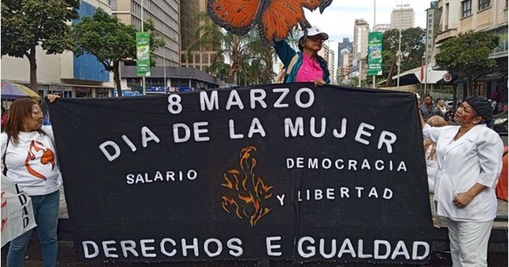 Con pancartas y consignas, mujeres venezolanas conmemoran su día.