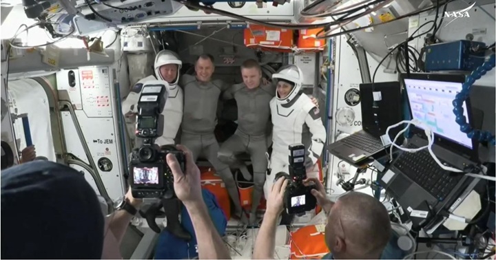 Tras un fuerte saludo con los tripulantes que permanecen en la EEI, el cuarteto entró en la cápsula y cerró su escotilla a las 03H05 GMT del martes, antes de su desacople dos horas después.