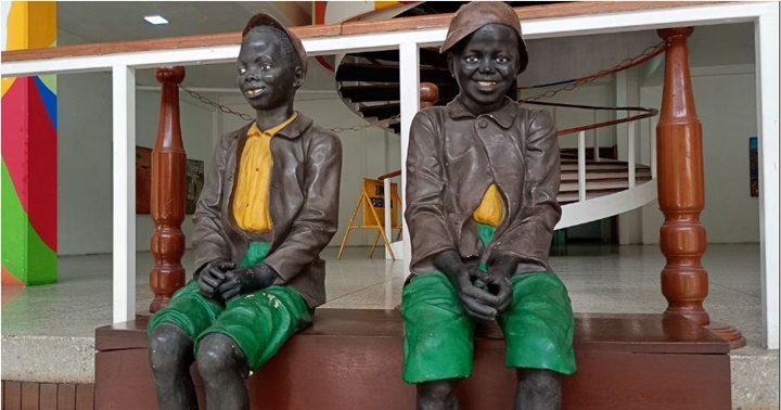 Los negritos presiden la entrada principal del Ateneo Luis Mariano Rivera.