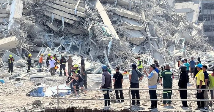 Edificio en construcción derruido en Bangkok por efecto del terremoto.