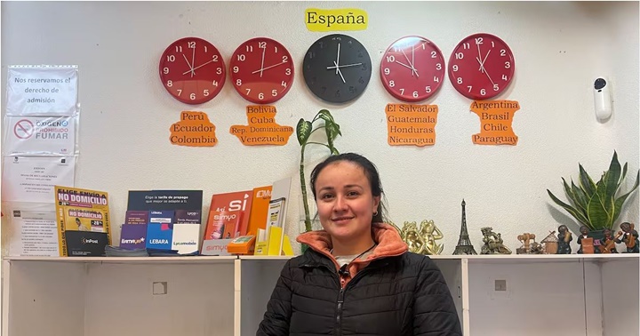 La dueña del local desde donde manda Flores se llama Carla Trigo. En un momento en el que la mayoría de estos establecimientos están cerrando, ella decidió apostar por este tipo de negocio hace un año. Aquí, la mayoría de las personas que entran son latinos que trabajan por el sector y envían dinero a sus familias, explica Trigo, de 35 años.