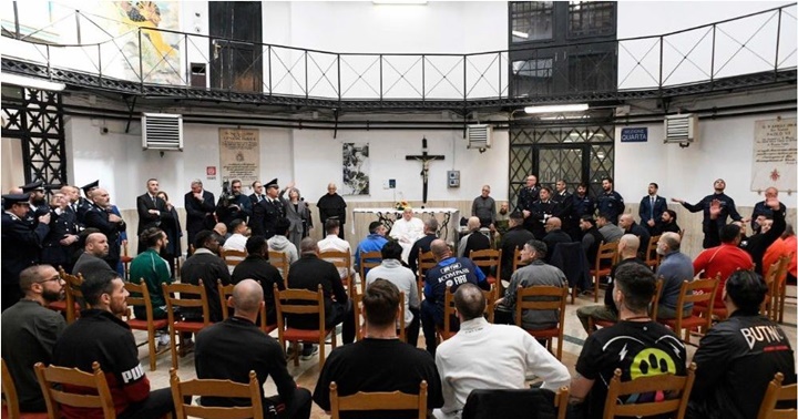 Esta tarde, poco antes de las 15 horas, el Papa Francisco ha visitado la cárcel Regina Coeli. Recibido por la Directora de la Prisión, Claudia Clementi, y por el personal, llegó a la Rotonda principal, donde se encontró con unos 70 reclusos, de diversas nacionalidades, que participan regularmente en las actividades y catequesis organizadas por el Capellán del Instituto.