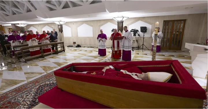 El cuerpo se ha depositado en un único ataúd de madera con el interior de zinc y se expondrá directamente en el féretro abierto, pero no en un catafalco como había sido hasta ahora y tampoco se colocará el báculo Papal durante esta exposición.