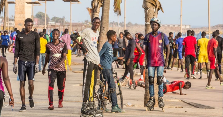Jóvenes reunidos en la zona de la cornisa de Dakar, Senegal.