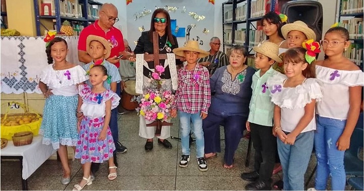 Amabelys Ugas, directora del ente, que cada año la biblioteca se viste de gala para honrar la tradición, y que congrega a cultores y artistas para cantar a la cruz, como parte de un festejo alterno después que se lleva a cabo el principal, cada 3 de mayo.