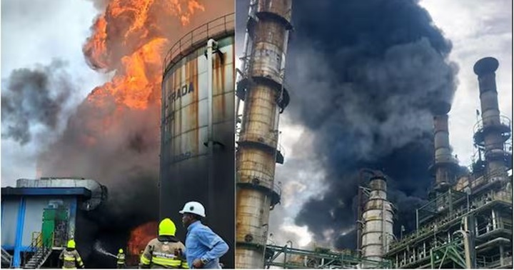 La fuerza pública y trabajadores de la refinería cercaron el paso hacia la central para preservar la seguridad y facilitar la circulación de vehículos de socorro, constató un periodista de la AFP.