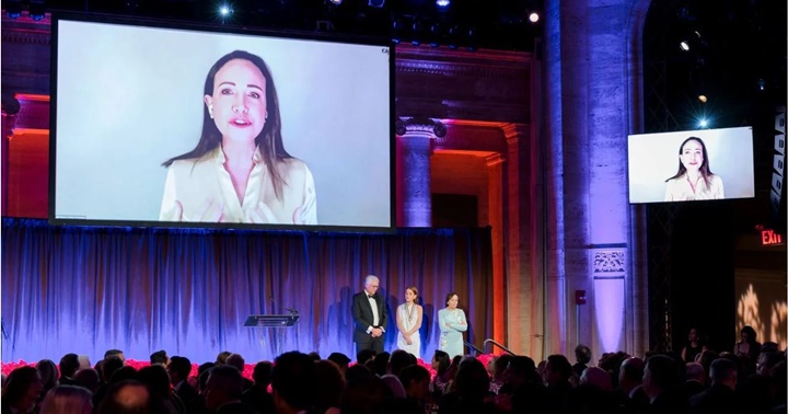La líder opositora María Corina Machado recibió este 10 de junio la Medalla de Oro de la Americas Society en el marco del 60º aniversario de la organización, durante una ceremonia celebrada en Nueva York, Estados Unidos, que reunió a destacados líderes empresariales, diplomáticos y defensores de la democracia de todo el hemisferio occidental.